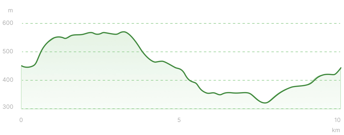 Pot večinoma poteka po mehkih gozdnih tleh, s krajšimi odseki po asfaltu in makadamu. Krožna proga je razgibana in raznolika – z nekaj tehničnimi odseki, a tekoča in prijetna tudi za izkušene cestne tekače, ki si želijo preizkusa v naravi.